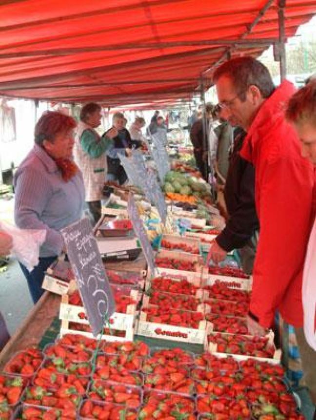 Å gå inn på en fransk markedsplass er som å gå inn i et overflødighetshorn av fantastiske lukter, råvarer av høy kvalitet og farger, så øynene de gleder seg. Markedet er som regel delt opp i forskjellige avdelinger. Klær, sko, kurver for seg. Dyr et annet sted og blomster et tredje. Det største området er også det beste. Det er her man finner alle de gode franske spesialitetene.