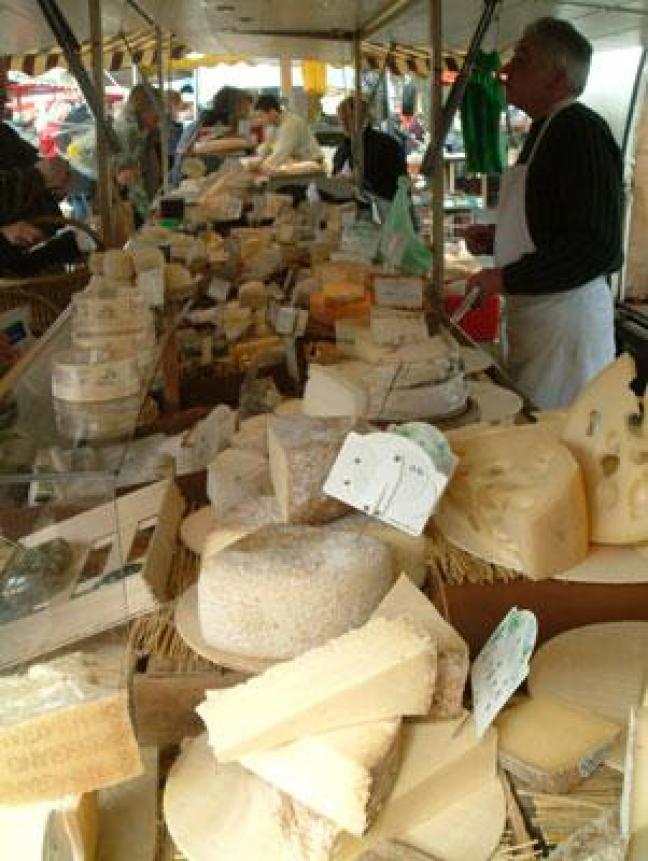 Ost er ikke nok til et veldekket fransk bord. Det skal også være brød, pølser, vin, frukt, salat, yoghurt, kaffe og sjokolade. Så det tar tid å handle, men det er med stor fornøyelse, dersom du spør meg. Ikke noe er pakket inn i plast, man betaler med penger, pruter på prisene, rører, smaker, lukter seg fram til det man vil ha med hjem i bobilen. Slik skulle jeg gjerne ha handlet hver dag. Prisene er ofte litt høyere enn på supermarkedet, men kvaliteten ligger mange hakk over. Er du på markedet i flere timer, blir varene ofte satt litt ned i pris når det nærmer seg stengetid.