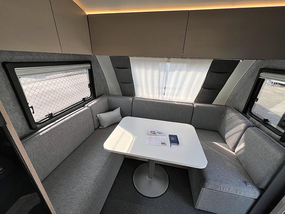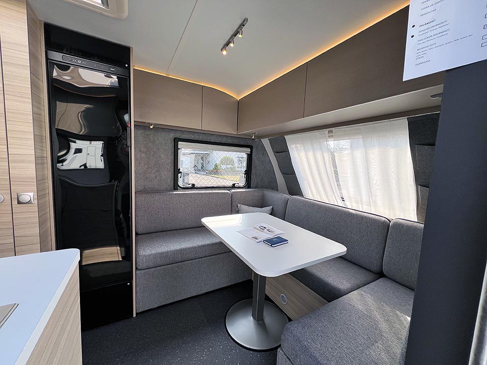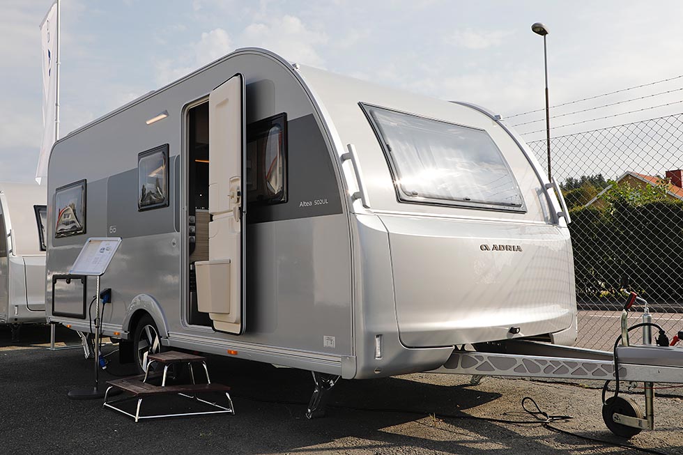 Tenhult, Sverige: Selv om regnet truer i horisonten denne sensommerdagen i august, skinner sola på de utstilte vognene. Vi er på Adrias presentasjon av deres 2026-nyheter, og to modeller skiller seg ut der de glitrer i nyanser i grått. De to nye jubileumsmodellene har nemlig helgrå utside og dekorelementer som gjør at man raskt kjenner de igjen som spesialutgaver.