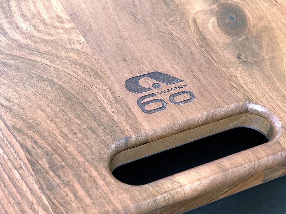 At de begge har fått en skjærefjøl i tre, med 60-års logo er vel neppe en kioskvelter, men en av mange detaljer som gjør modellen ekstra trivelig og velutstyrt. Det samme gjelder spesialdesignede jubileumsputer og flere fargede detaljer.