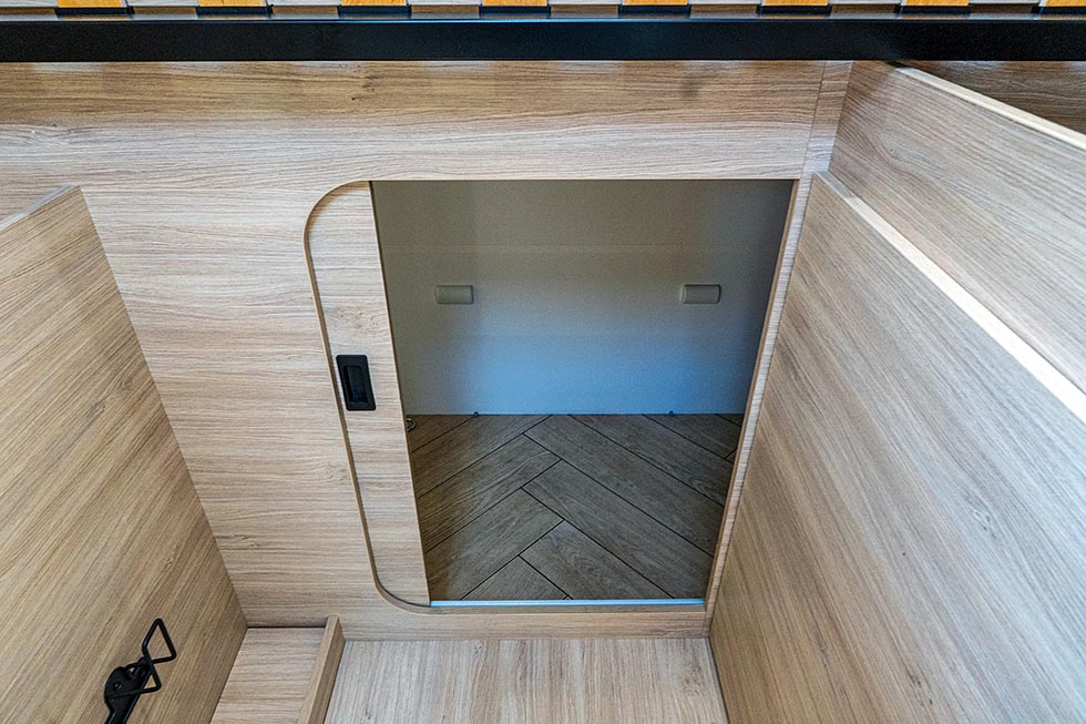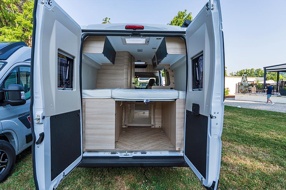 Stige trengs derimot for å komme opp i den høye tverrsengen bak. Høy for å gi plass til en romslig garasje med plass til sykler. Man må jo leve opp til navnet Sport Edition.