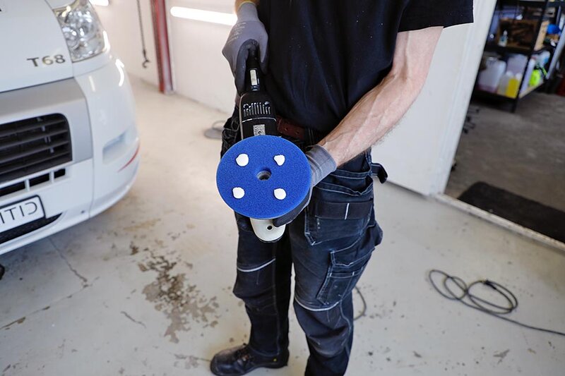 På mange bobiler er fronten mest slitt, mens sidene ofte er bedre. Derfor kan det være nødvendig å bruke ulike puter på forskjellige steder. Det samme gjelder også type poleringsmiddel, matte overflater krever mer, og da må man ofte ta det i to omganger: Først slipemiddel og så et beskyttelseslag. Der du har et godt utgangspunkt kan du bruke alt-i-ett rens og beskyttelse, for å spare tid og arbeid.